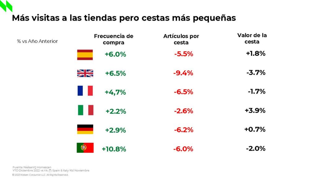 Datos del informe “Quarter by numbers” para Europa Occidental, que analiza el comportamiento del primer trimestre de 2023 en el sector del gran consumo en 14 países europeos, Alemania, Austria, Bélgica, Dinamarca, España, Finlandia, Francia, Irlanda, Italia, Noruega, Países Bajos, Portugal, Reino Unido, Suecia y Suiza, así lo confirman.