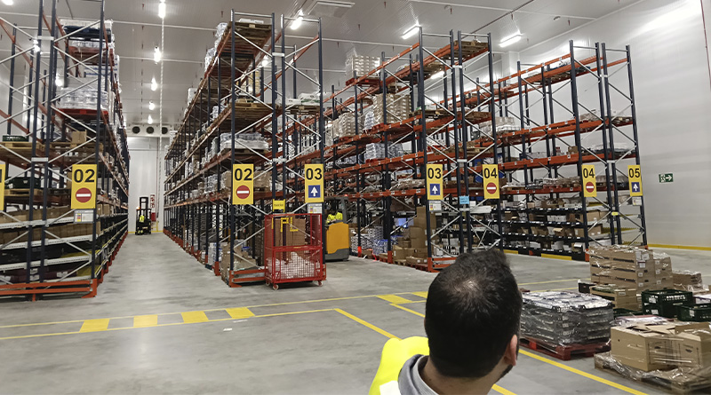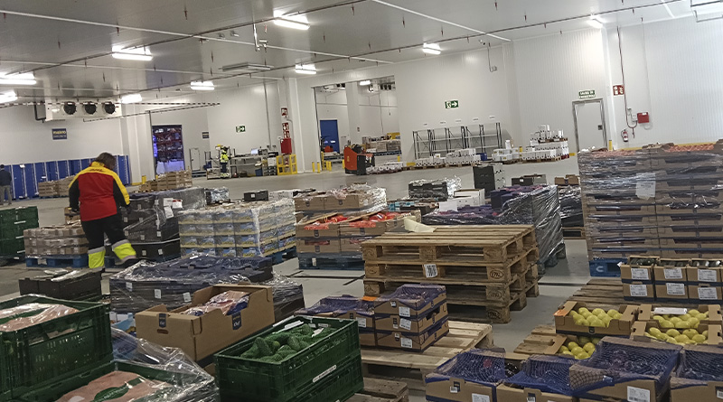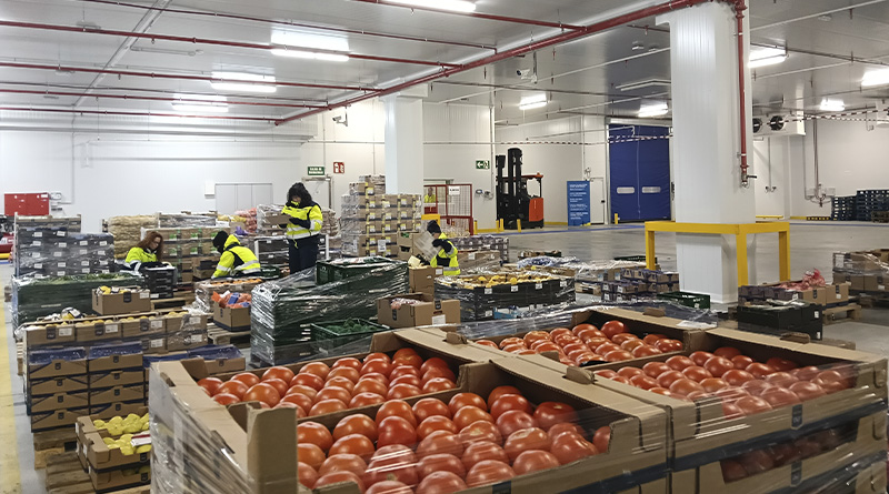 La nave central mantiene una temperatura controlada de entre 6 y 7 grados para la preparación de los pedidos destinados a la distribución, explicó el responsable de la planta. “Por la mañana vemos el proceso de recepción de frescos, tanto de frutas como de verduras. Todo sale esta misma tarde o al día siguiente para el cliente final”. La fruta y la verdura proceden de proveedores locales; en total, más de 2.000 colaboran con Makro.
